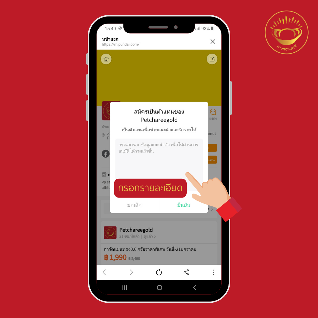 1.ทัก LINE:@petchaaree และพิมพ์ สนใจสมัครตัวแทน