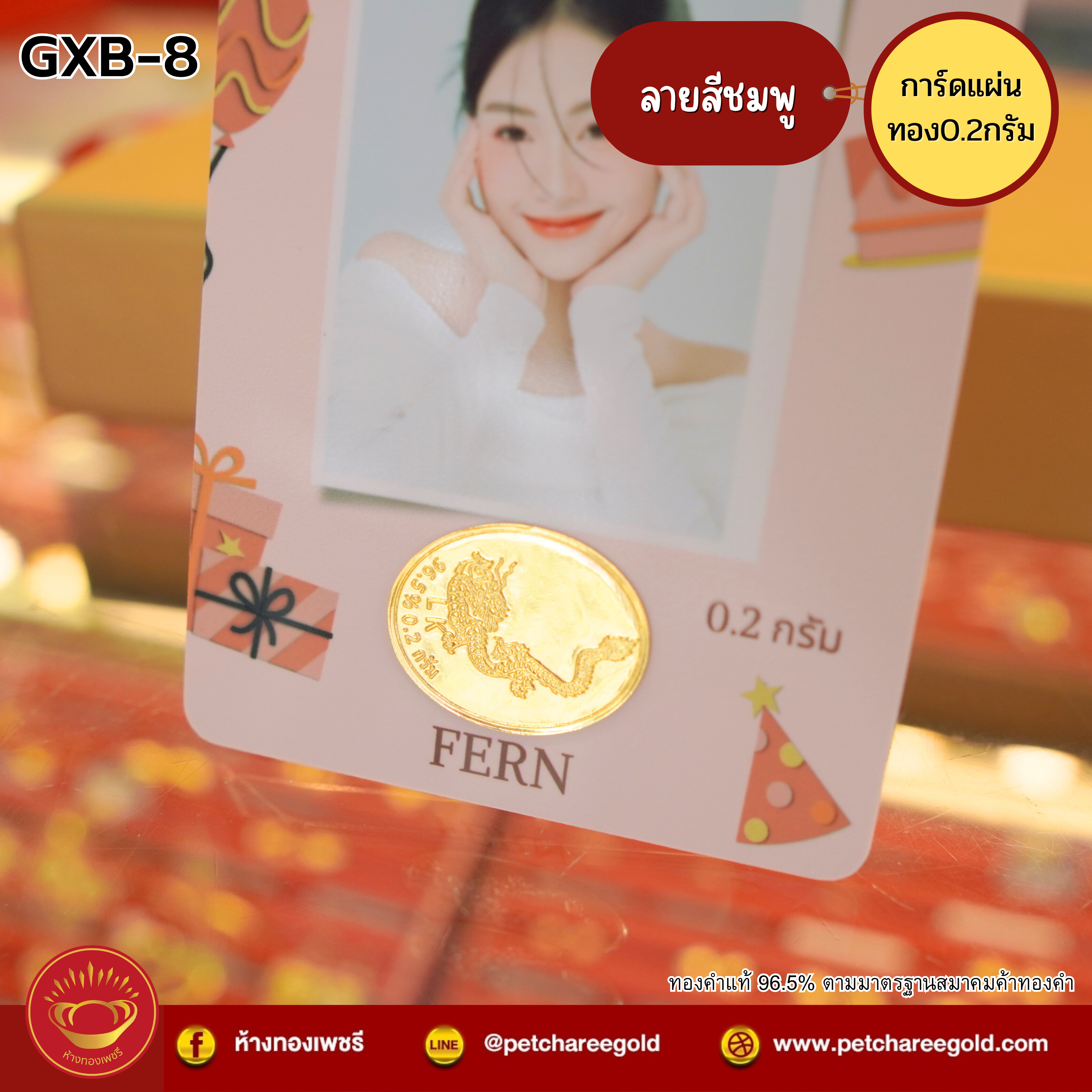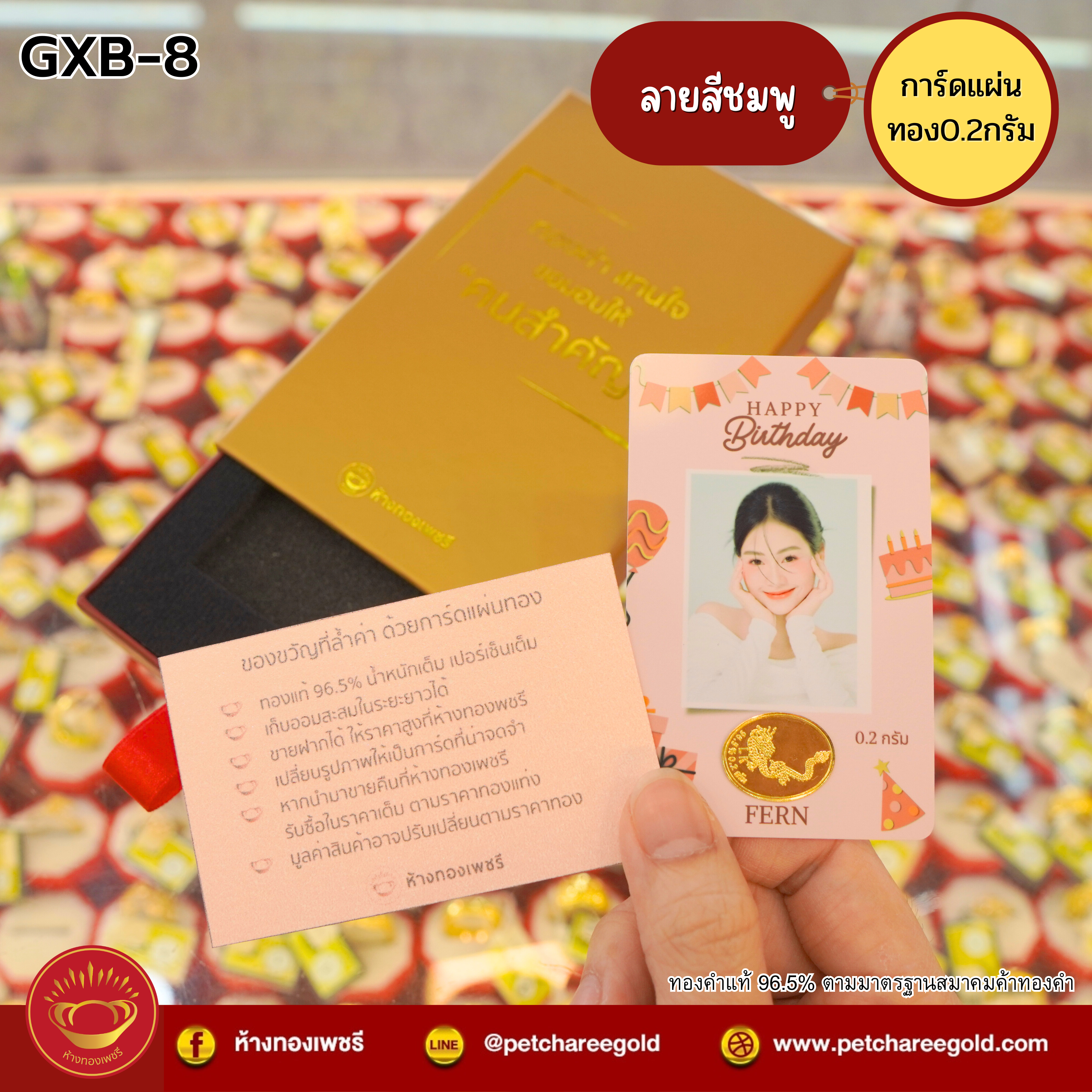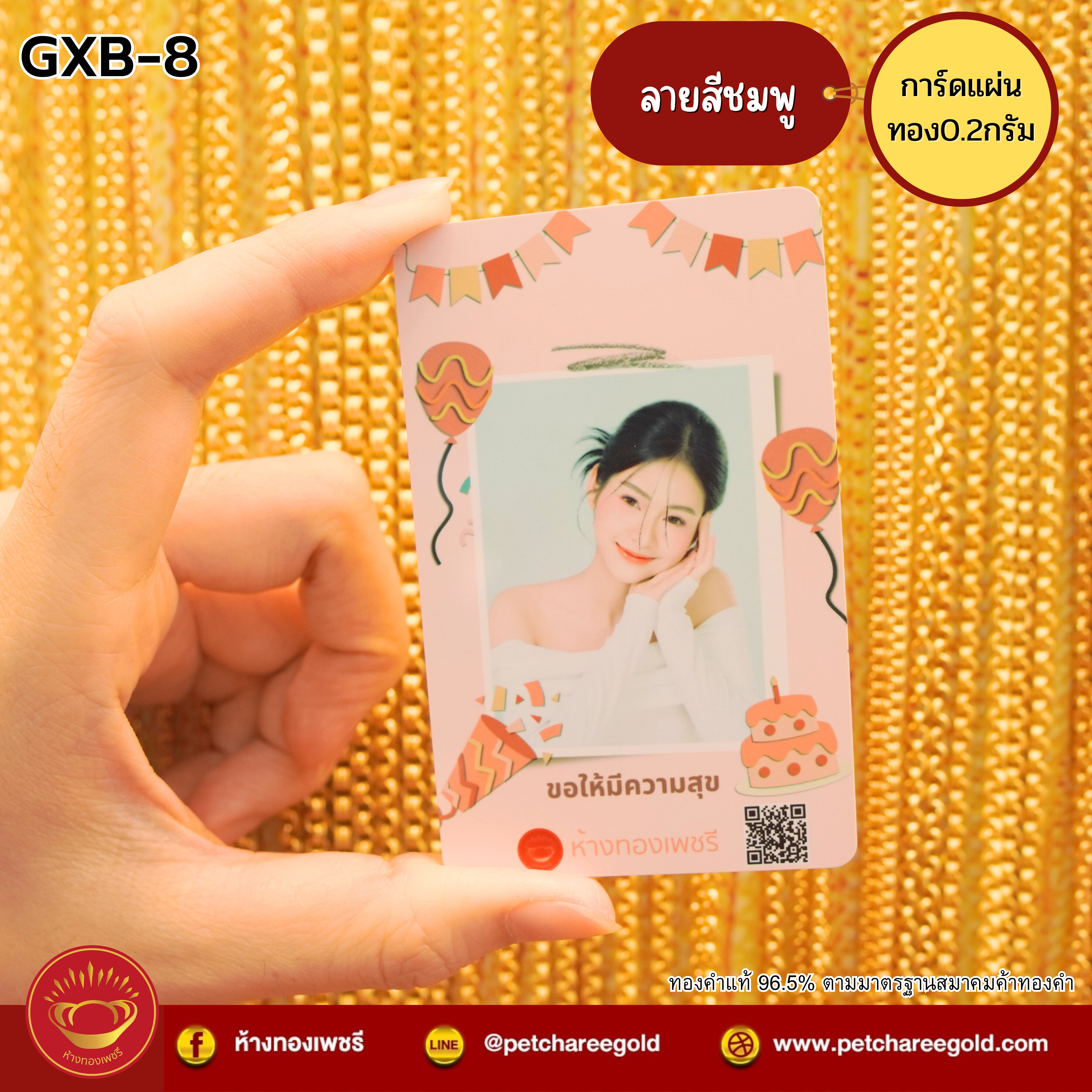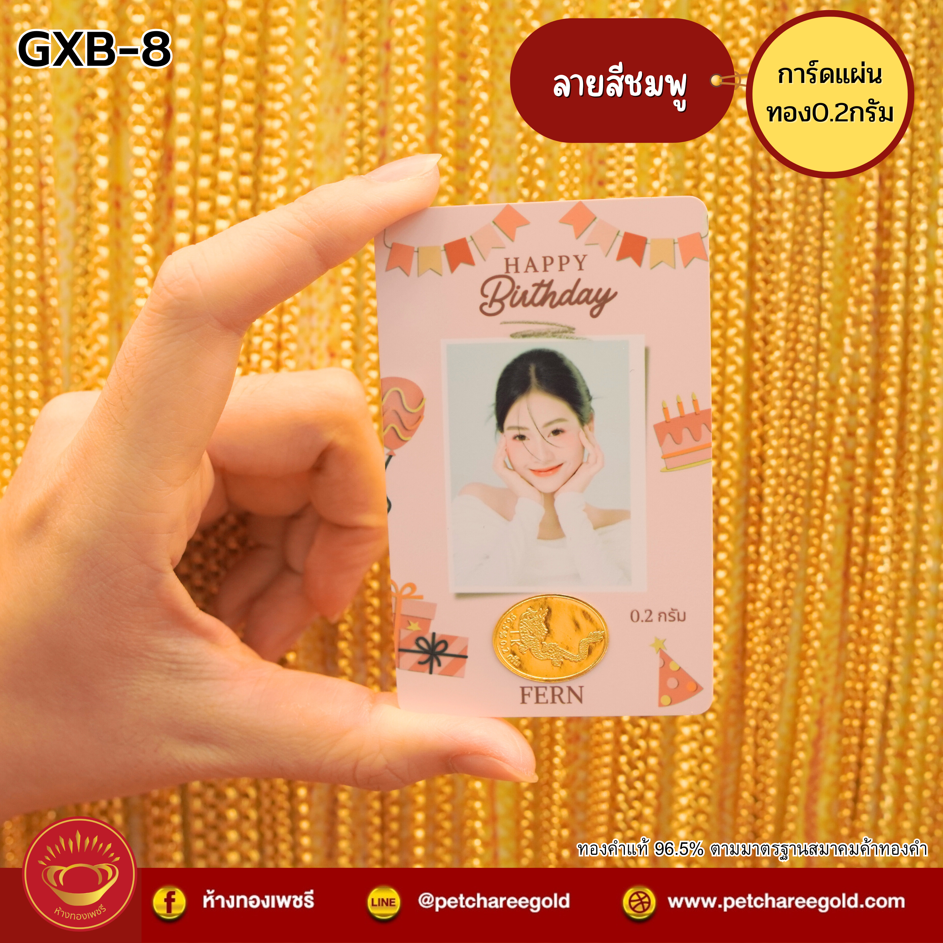 การ์ดแผ่นทองของขวัญทองคำแท้ 0.2 กรัม วันเกิด สีชมพู GXB-8