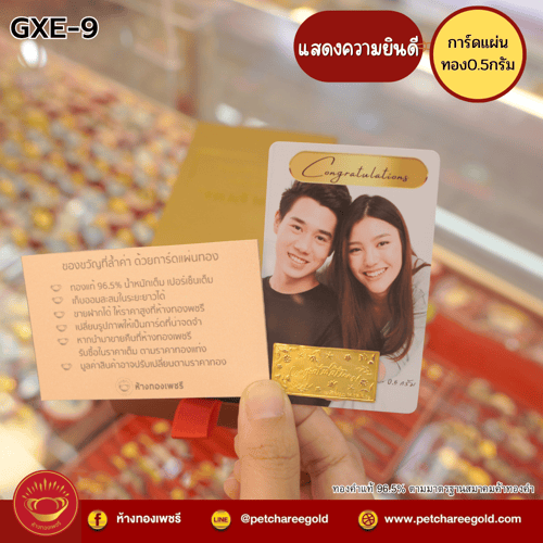 การ์ดแผ่นทองของขวัญทองคำแท้ 0.5 กรัม แสดงความยินดี GXE-9