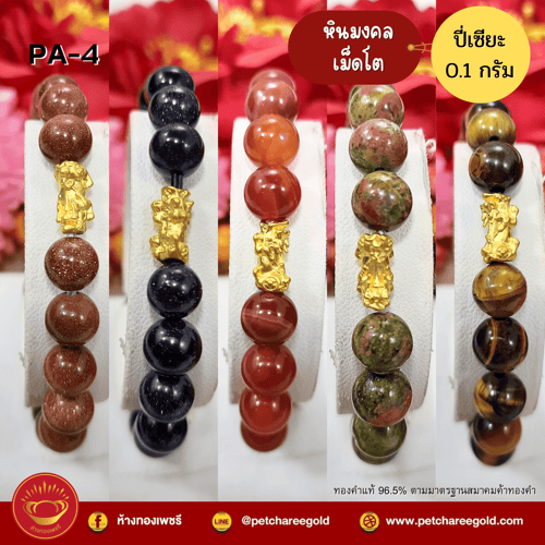 ข้อมือปี่เซียะทองคำแท้ 0.1 กรัม หินมงคลเม็ดโต PA-4