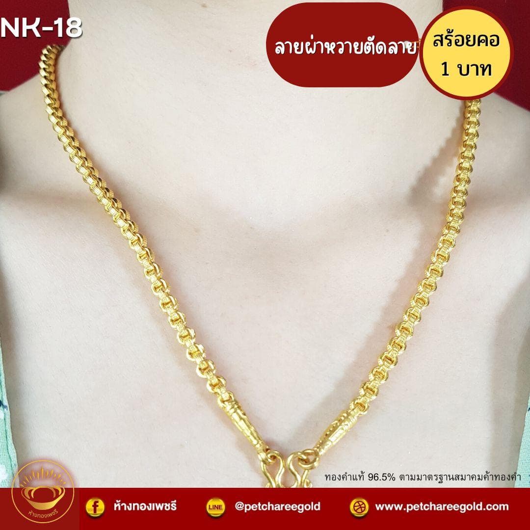 สร้อยคอทองคำแท้ 1 บาท ลายผ่าหวายตัดลาย NK-18