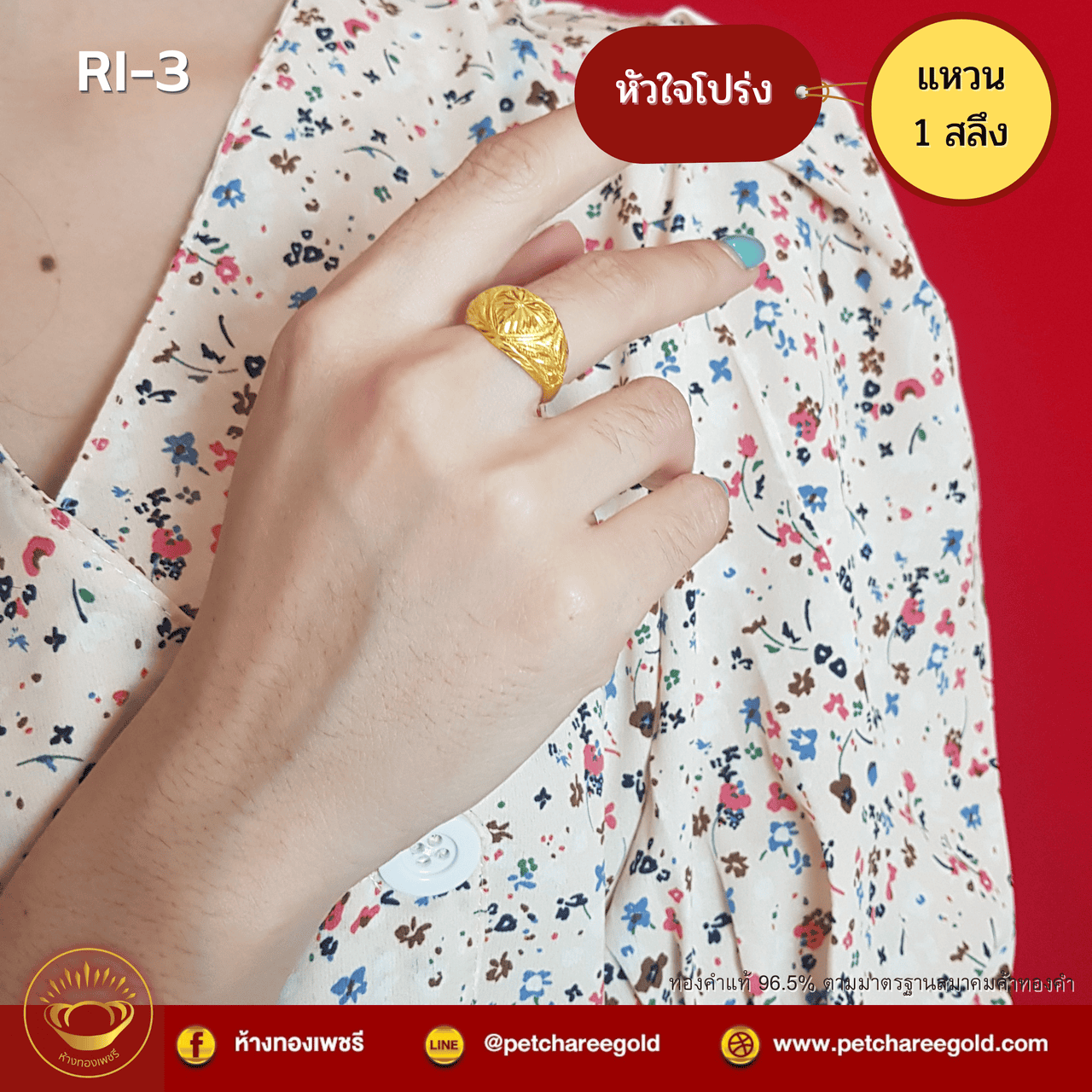 • ประเภทสินค้า : แหวนทองคำแท้ 96.5%