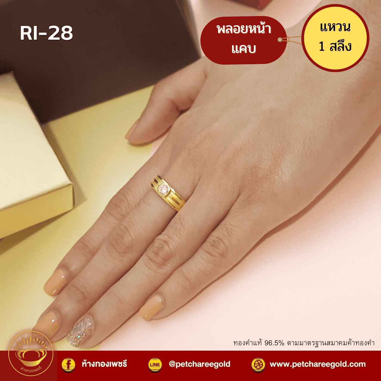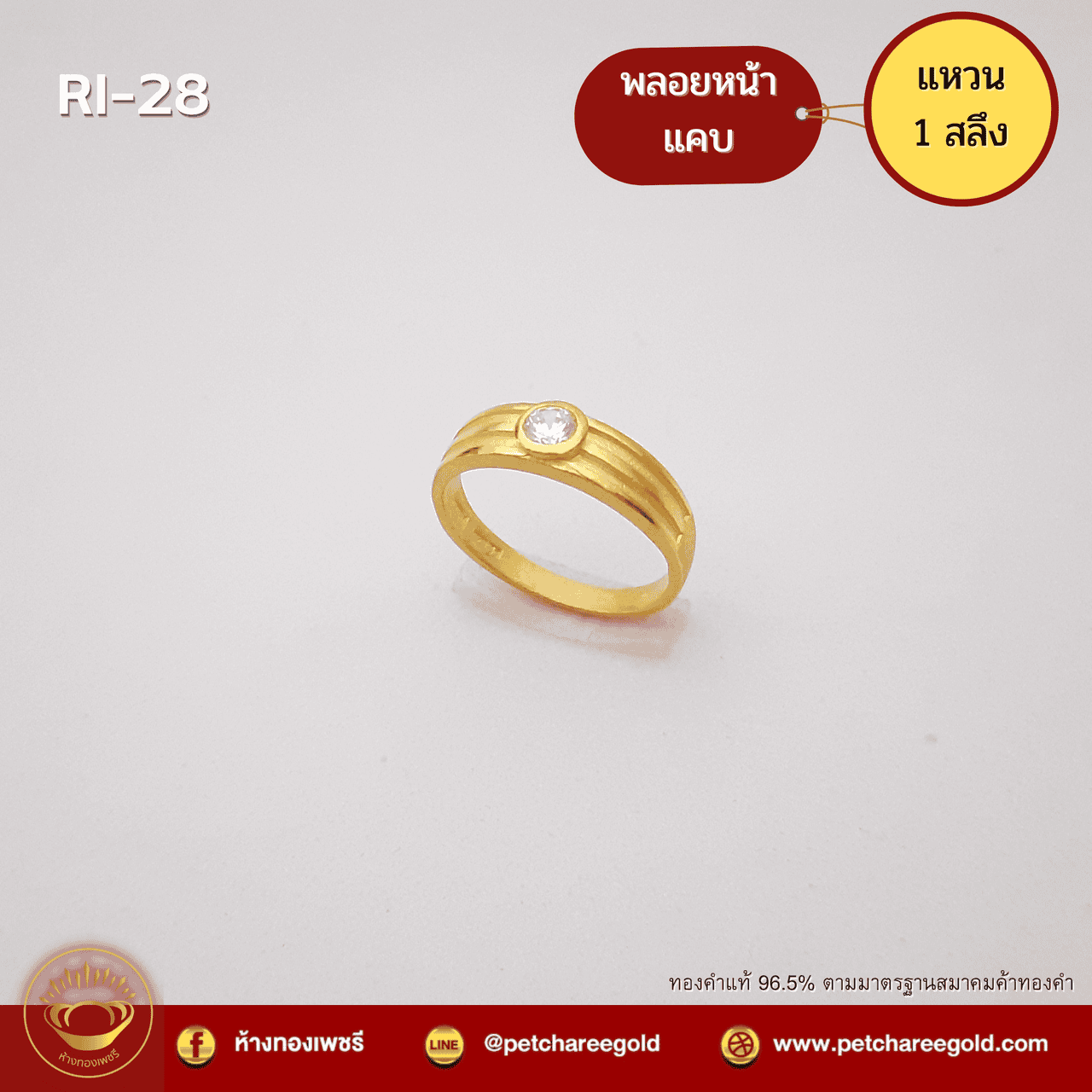 แหวนทองคำแท้ 1 สลึง ลาย พลอยหน้าแคบ RI-28