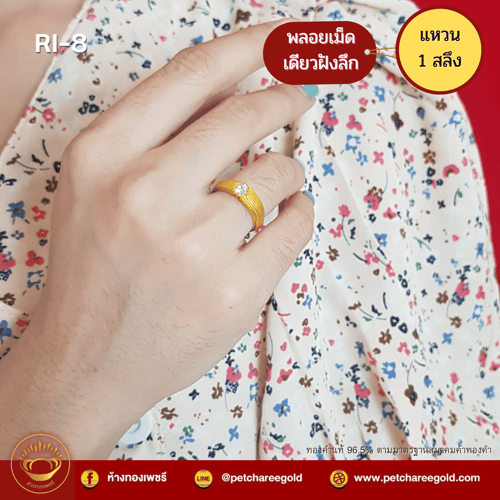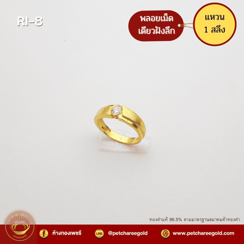 แหวนทองคำแท้ 1 สลึง ลาย พลอยเม็ดเดียวฝังลึก RI-8