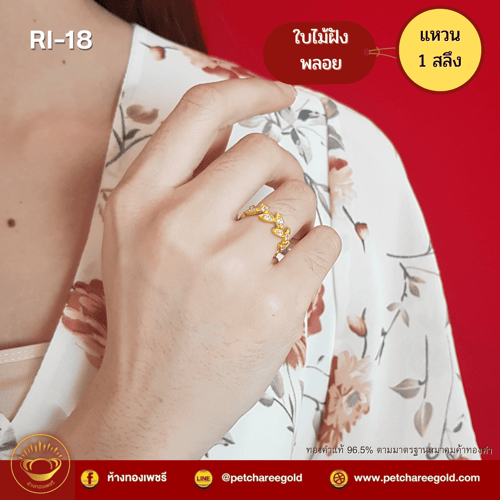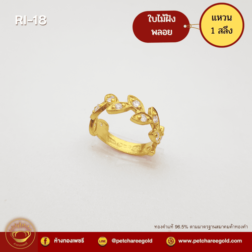 แหวนทองคำแท้ 1 สลึง ลาย ใบไม้ฝังพลอย RI-18